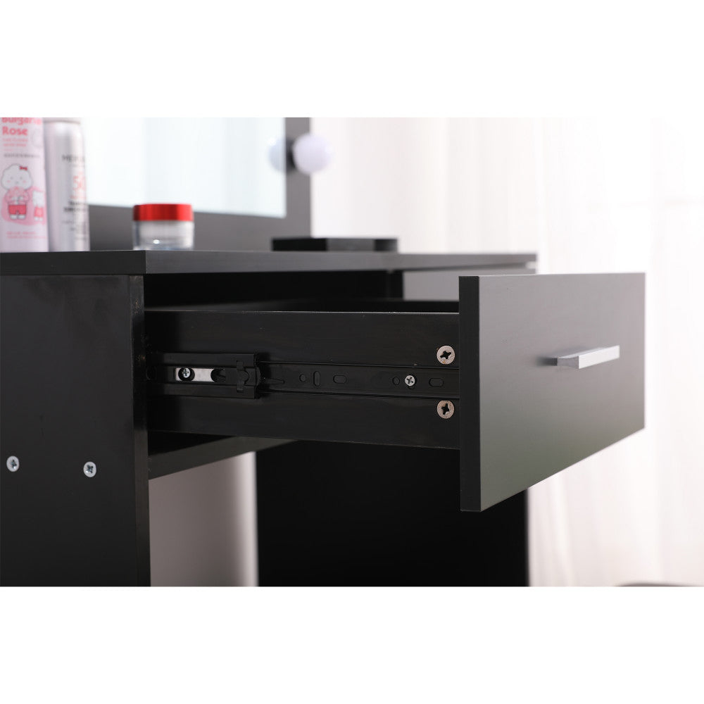 Painted with simple black, the dressing table is easy to clean and maintain.