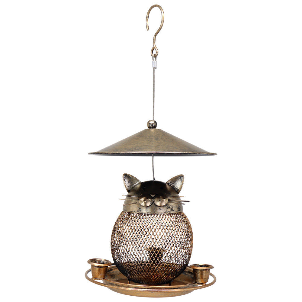 This hanging bird feeder is a perfect blend of artistic craftsmanship and practical wildlife care. The central body is formed from a robust metal mesh, which provides excellent ventilation for bird seeds and allows for easy monitoring of food levels. The base tray is engineered with precision-drilled drainage holes to prevent moisture accumulation, ensuring a reliable feeding environment for local avian visitors. Its vintage golden-bronze texture adds a touch of rustic elegance to any outdoor setting, integrating seamlessly with natural surroundings. Whether placed in a residential backyard or a professional landscape, this feeder offers a sturdy and long-lasting solution for inviting nature into your home.