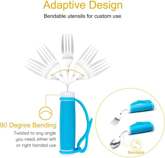 Flexible, adaptable cutlery for seniors, people with disabilities, Parkinson's disease, arthritis, vibration, weak grips, and people with disabilities and arthritis - non-slip handles for easy gripping and shaking