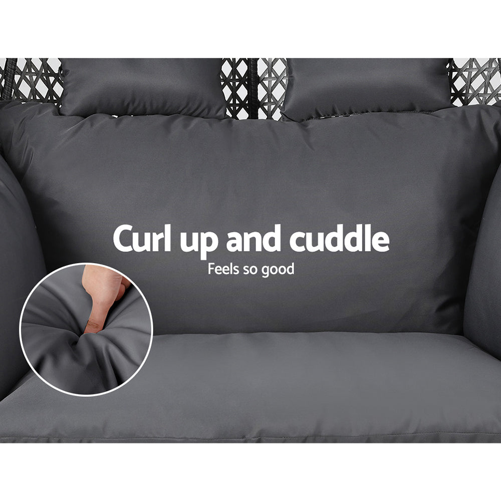 Otherwise known as the hanging egg chair, the Gardeon Hanging Pod Chair is the epitome of ultimate relaxation. Featuring 100% hand-woven rattan, the pod is beautifully handcrafted to give it a cool, exotic appeal that will suit any balcony, poolside, or indoor living space. It has ample space for two with a weight capacity of up to 240kg. Two supporting poles ensure added stability and strength, while the powder-coated finish ensures that corrosion will never be an issue. Best of all, the soft, inviting cushion offers plush comfort for day dreamers and leisure seekers alike. Hang cool people! Get your Gardeon Hanging Pod Chair just in time for summer!