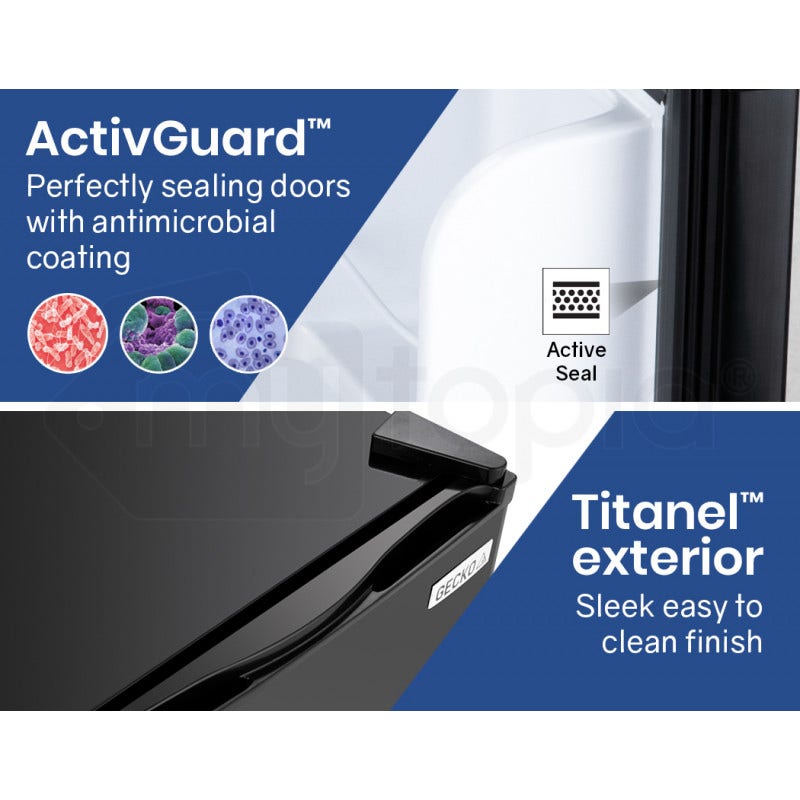 The Gecko is designed to perform in harsh Australian conditions. Latest compressor technology and thick insulation ensure that it can cool fast and continue to operate in ambient temperatures up to 38 degrees! The Gecko range feature ActivSealTM technology which combines perfectly sealing doors with an anti-microbial coating to inhibit the growth of germs. All this is wrapped in a sleek TitanelTM metal finish, ensuring it will look right at home anywhere, and is also ready for your souvenir magnet collection!