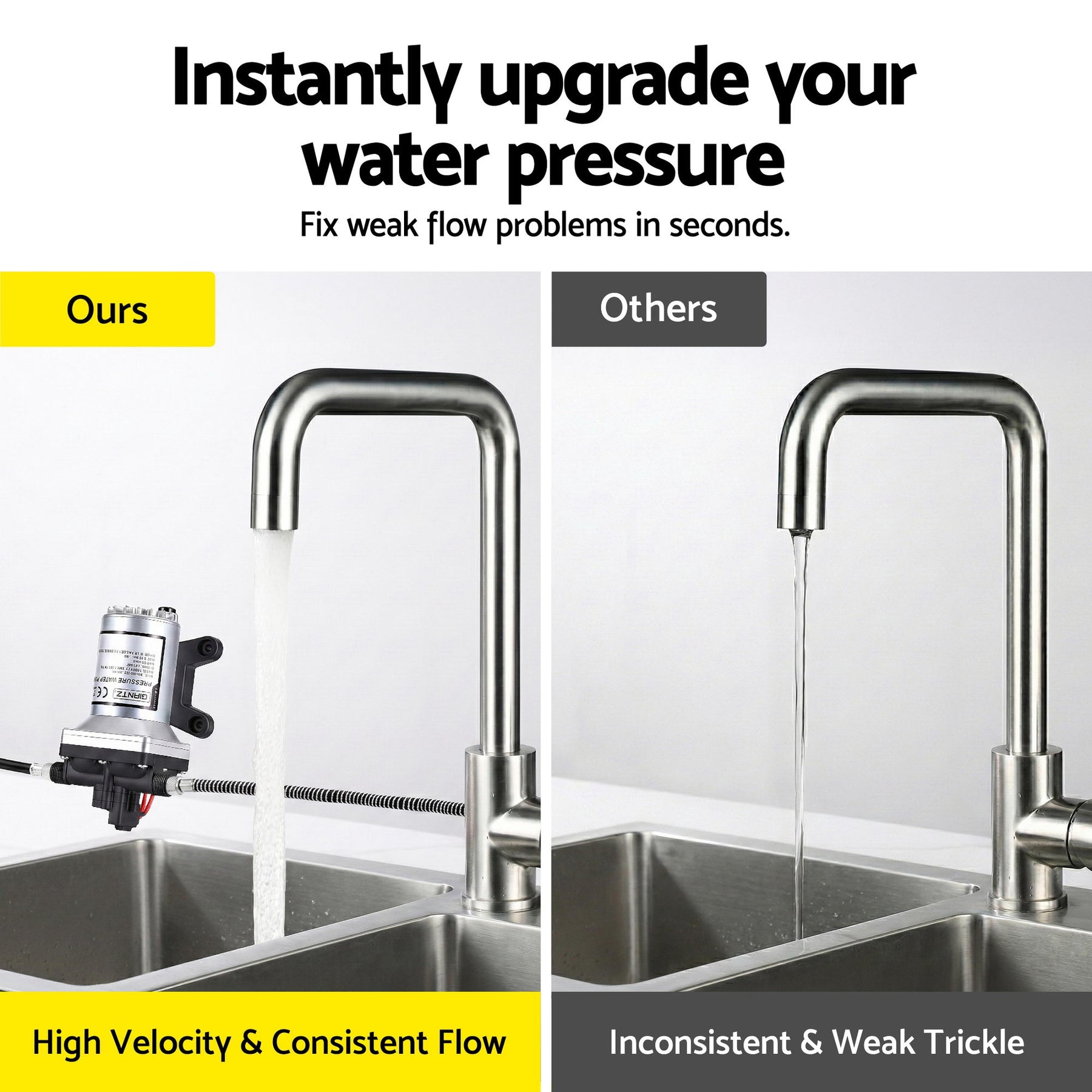 Automatic Pressure Switch: Starts and stops with tap usage for energy efficiency.