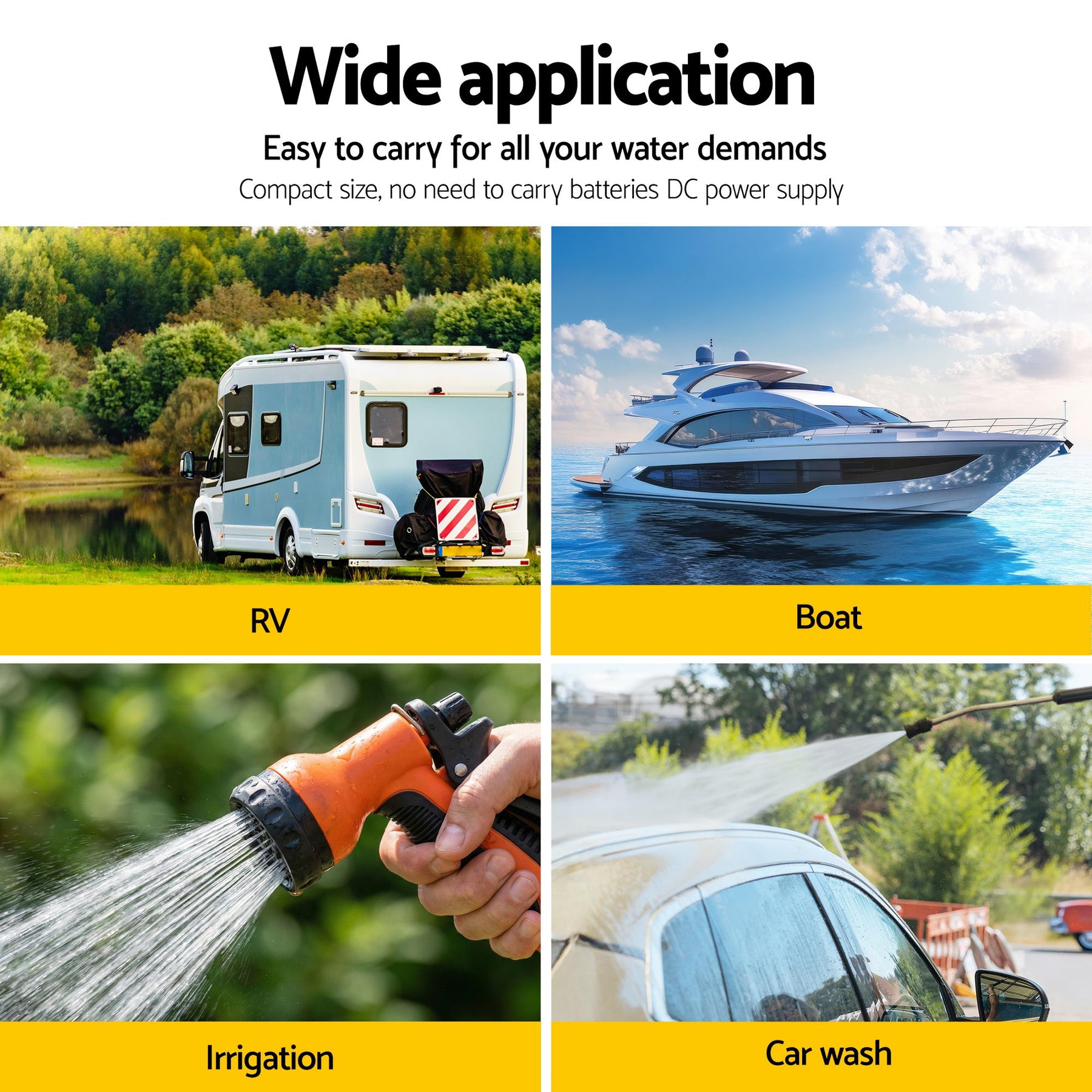 Designed for Your Yacht, Garden, and Home Whether you're detailing your car, watering the garden, or maintaining a yacht, the Giantz pump's compact and quiet design makes it the perfect fit. This reliable 12Volt DC fresh water pump is a direct replacement for standard RV water pumps, ensuring your next outdoor adventure is as comfortable as being at home.