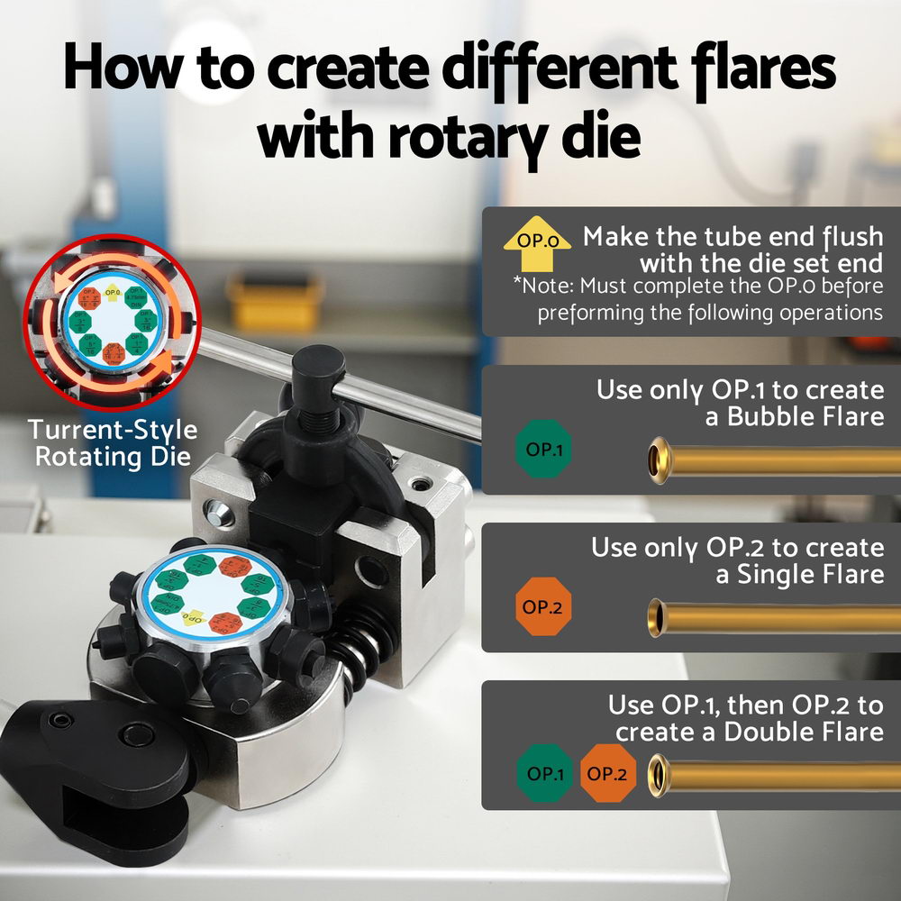 Flaring Die Size: 3/16inch(4.75mm), 1/4inch(6.35mm), 5/16inch(8mm), 3/8inch(9.5mm),