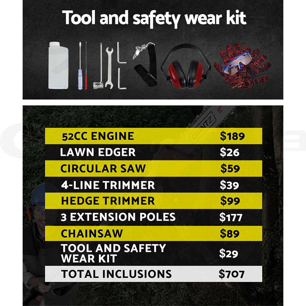GIANTZ 2 Stroke 52CC 7-IN-1 Pole Chainsaw x1