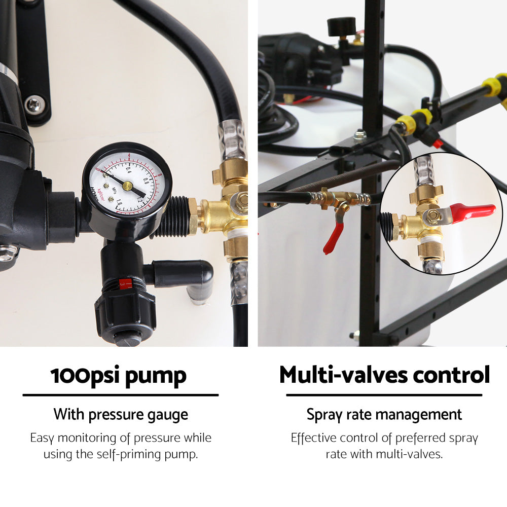 Driven by a self-priming, run-dry protected pump with a massive 100psi 13litres/min flow rate, our Weed Sprayer makes light work of all spraying tasks. When hitched to an All-Terrain Vehicle (ATV) or similar vehicle, the trailer-mounter Weed Sprayer really takes advantage of its 3m boom with three spraying options to provide optimum coverage on just one run. The leak-proof 100L tank also ensures more work done with less down time. All components are designed to withstand robust use, including a 6m high pressure chemical-grade hose. Also included is a handheld spray nozzle. Not least, the boom support poles are adjustable for low or high level spraying and the boom itself is foldable for easy storage.