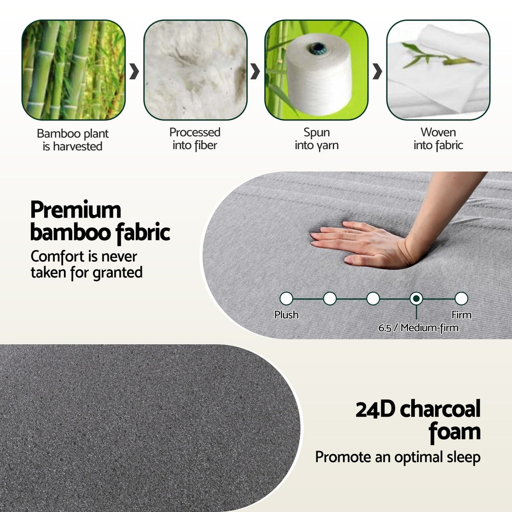 Experience adaptive comfort in Giselle Bedding's NOBLE Series memory foam mattress. This 15cm profile features cooling gel memory foam with 7-zone CNC cutting for body-contouring support, combined with charcoal-infused foam for enhanced stability. The premium bamboo cover promotes airflow while being removable and machine-washable. Giselle Bedding's innovative design minimises partner disturbance, delivering medium-firm comfort perfect for compact spaces.