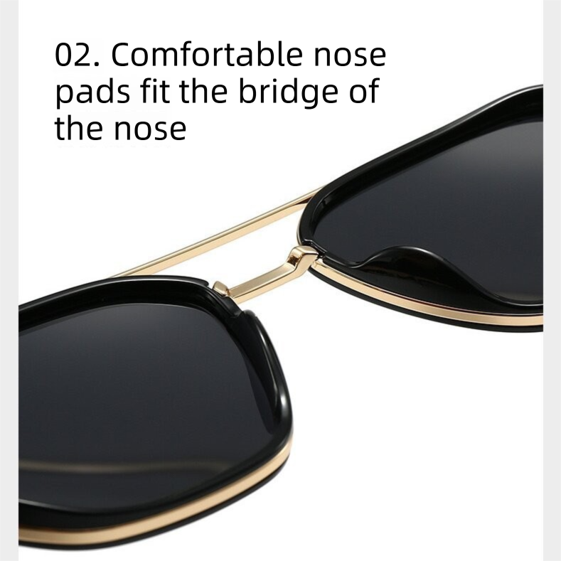 This rectangular sunglasses model features a structured frame design with a refined finish. The temples are ergonomically shaped to ensure secure fit and long-term comfort during extended wear. A built-in nose pad provides stable positioning on the bridge of the nose, reducing pressure points. The lenses offer high clarity and UV protection for outdoor use. Note: This is a functional eyewear accessory; it is not clothing, bedding, or medical equipment.