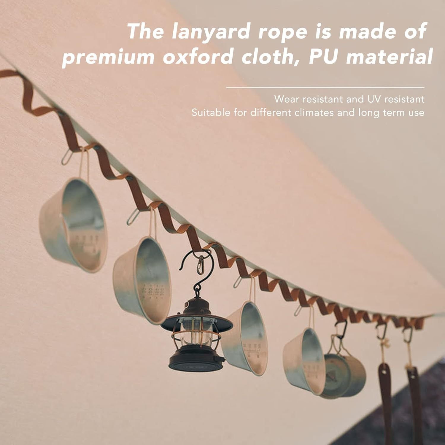 Keep your outdoor living space clutter-free and professional with our 5.3M PU Leather Camping Lanyard. This heavy-duty hanging system is designed for the modern camper who values both functionality and aesthetics. Crafted from a high-tensile nylon webbing base and reinforced with stylish PU leather loops, this lanyard extends up to 530cm, making it perfect for spanning between trees, across large canopies, or inside spacious family tents. With 19 dedicated hanging points and 19 included carabiners, you can easily organize lanterns, cookware, wet clothing, and essential gear off the ground. Its durable construction ensures it remains taut under load, while the compact storage size makes it an effortless addition to any adventure pack.