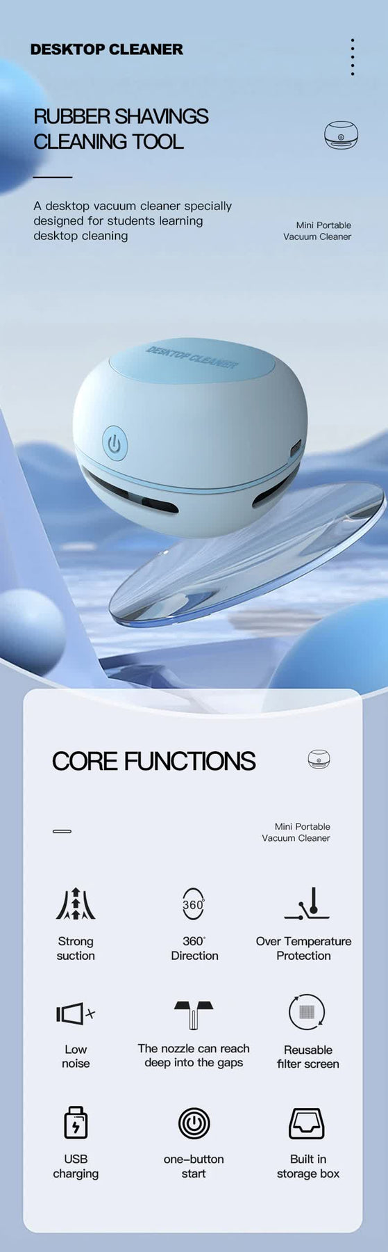 Tired of crumbs, dust, and eraser shavings cluttering your desk? This compact and powerful mini desktop vacuum cleaner is the perfect solution for quick cleanups! Its portable, wireless design and strong suction make maintaining a clean workspace effortless.