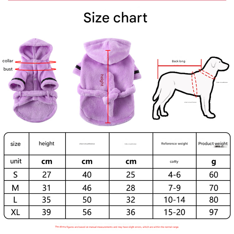 | Size | Body Length (cm) | Chest Girth (cm) | Neck Circumference (cm) | Recommended Weight (kg) | Product Weight (g) |