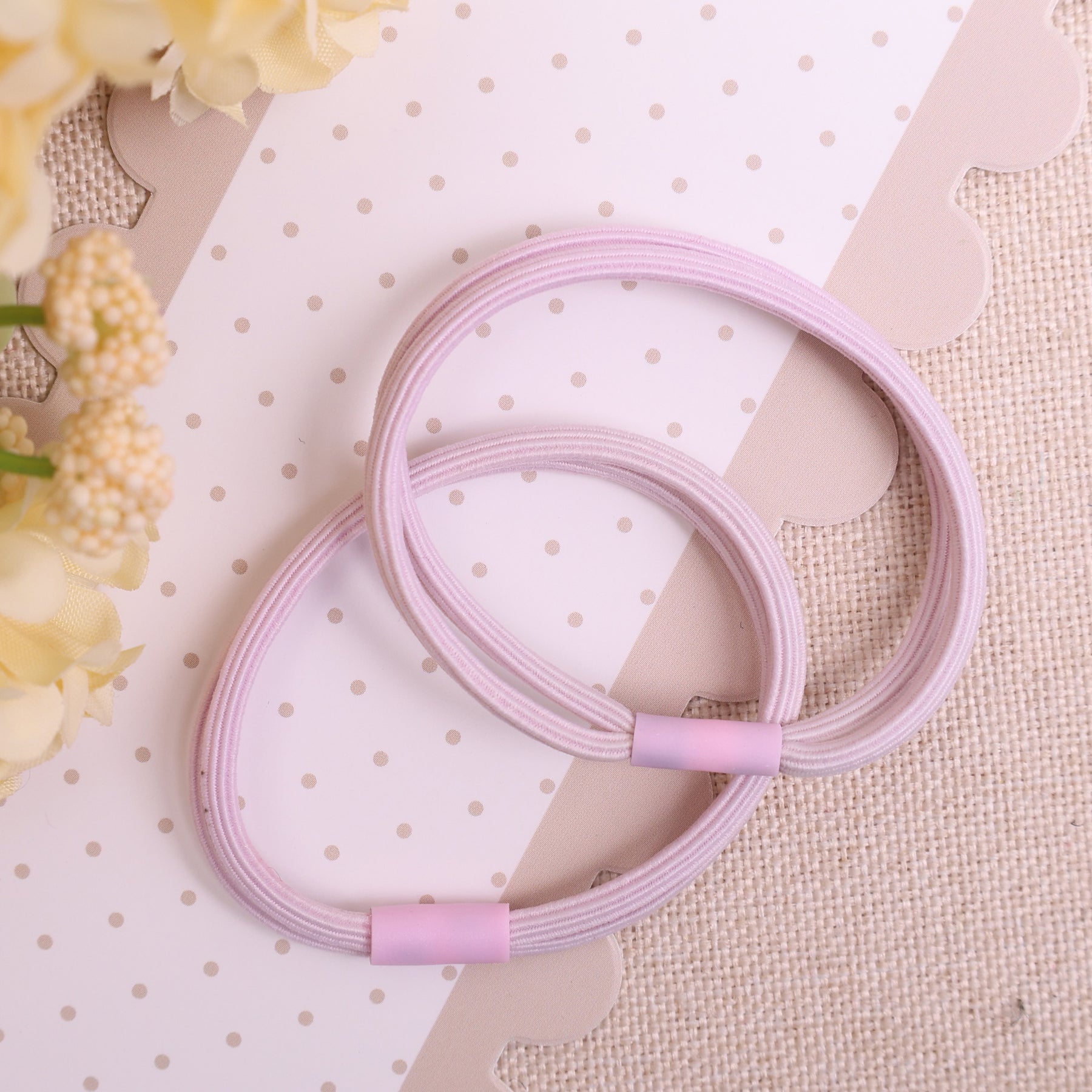 This cheerful set of hair ties combines style and functionality. The soft pastel colors will give your hairstyle a subtle chic touch, while the design also contributes to healthy hair.