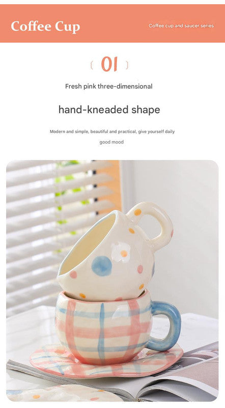 Designed for both style and practicality, this set is ideal for afternoon tea, casual gatherings, or daily use. The cup's ergonomic handle ensures a comfortable grip, and the set is safe for use in the microwave, dishwasher, and sterilizer, making it easy to clean and maintain. This elegant set is a thoughtful addition to any kitchen or a perfect gift for tea and coffee lovers.