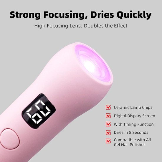 Thanks to its lightweight and compact size, this nail lamp is easy to carry and use anywhere. Ideal for gel manicures at home, in the office, or on the go, without compromising on performance or style.
