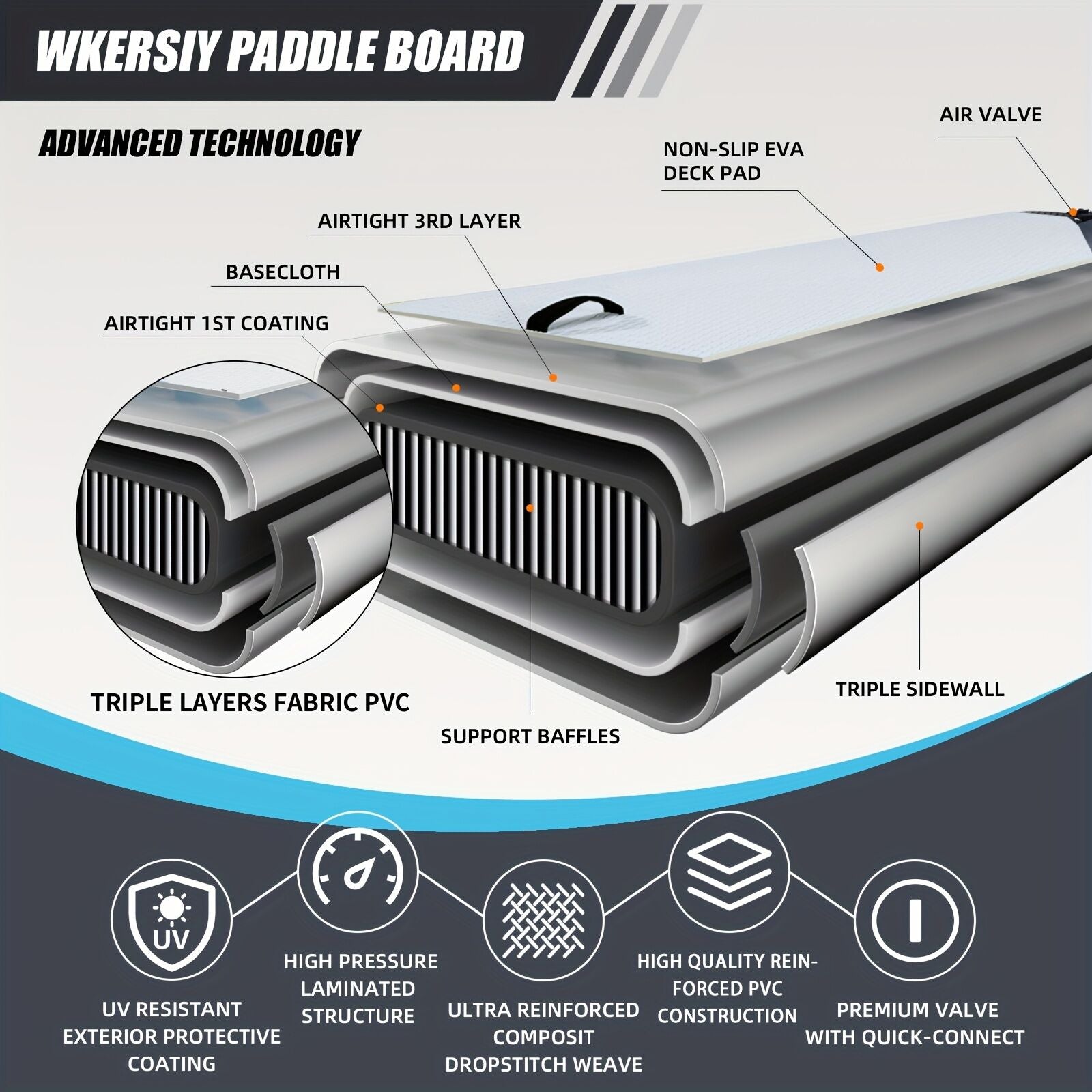 126-inch ultra-long board ensures precise straight-line tracking, while the 31.5-inch wide platform provides ample space, and 6-inch thick sidewalls offer excellent buoyancy and stability.