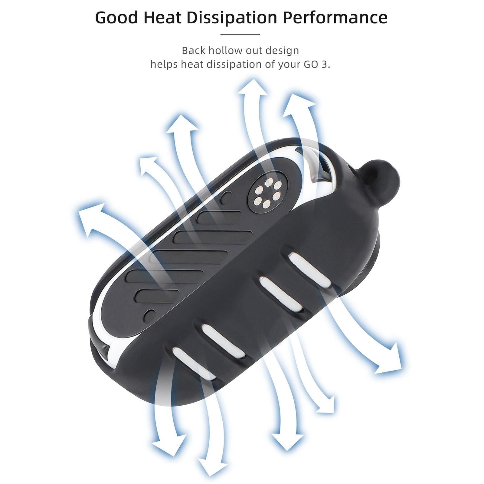 • Heat dissipation upgrade, allowing GO 3 to breathe freely. The back and sides are hollowed out to fully dissipate heat, and considerately consider the problem that the GO 3 easily gets hot when shooting.