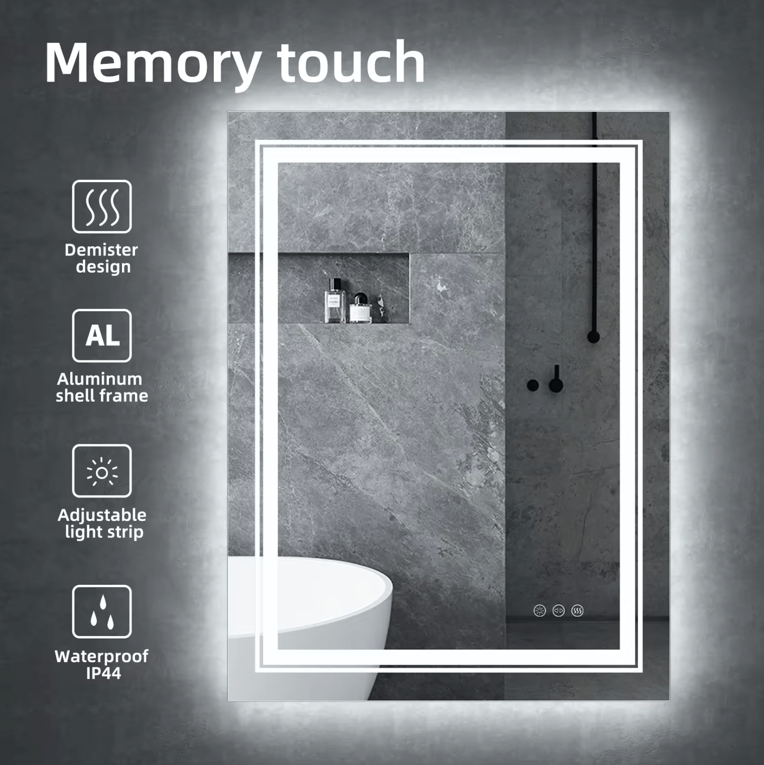 Feature: Touch Sensor, Anti-Fog, Backlit Light, Led Strip