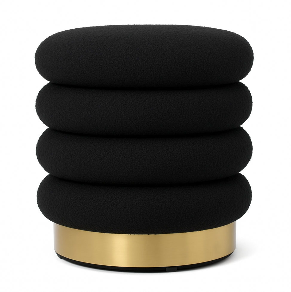 The Roma Round Ottoman blends deep black velvet upholstery with a refined gold-metal base, adding a touch of timeless elegance to any room. Its plush, cushioned seat offers comfortable seating while its compact round form integrates seamlessly into living rooms, bedrooms or dressing areas. Whether used as a footstool, extra seat, or statement accent, Roma delivers understated luxury and versatility for modern interiors.