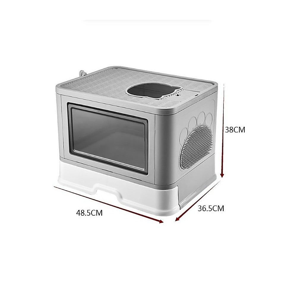 Make cleaning your cat's litter box and the surrounding space easy, thanks to our litter box's hollowed-out pedal and pull-out drawer. The pedal conveniently removes any unwanted remaining litter from your cat's paws. At the same time, the easy pull-out drawer and scoop make your box easy to clean and refresh. It also comes with a handy massager and organiser, allowing your cat to groom and offering a place to store a garbage bag or air freshener.