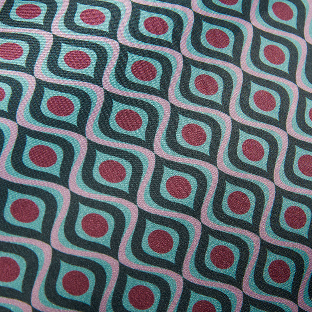 Give your interior a retro touch with the KAAT Amsterdam Meja Green Reversible Oblong Filled Cushion 30cm x 50cm. The decorative cushion has a satin look, retro motifs on the front in pink, green, sage, and plum hues, and colourful stripes on the back. The side is neatly finished off with purple edging. This decorative cushion is available in different colour combinations. Decorative cushion Meja is made of 100% polyester satin. The size is 30 x 50 cm. The cushion has a zipper at the bottom and comes with a resilient polyester inner cushion. Nice detail: the cushion has a golden puller at the zipper in the shape of an Amsterdam canal house. The cushion is is not suitable for machine washing or tumble drying.