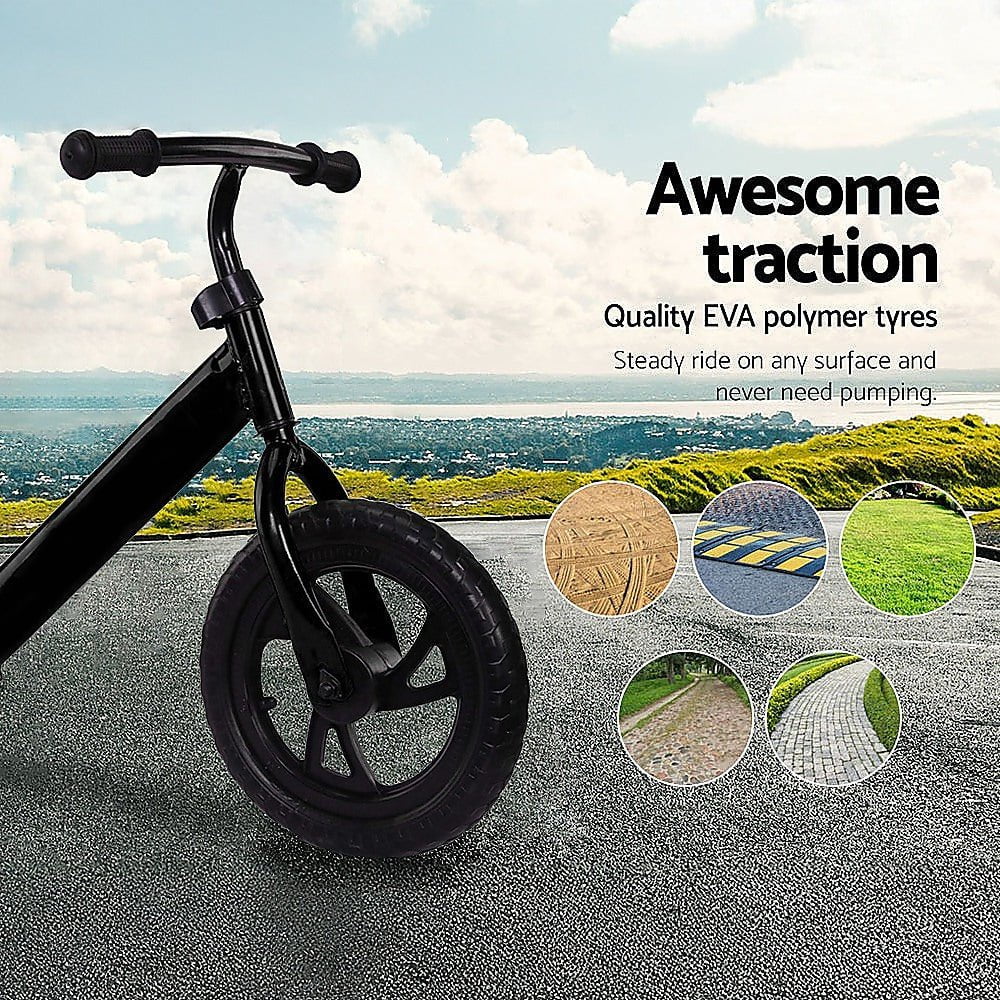 Introduce your children to the joys of cycling with the Kids Ride On Push Bike, an ideal choice for teaching them how to find their balance on two wheels while having a blast. This ultra lightweight bicycle is constructed with durable power-coated steel, ensuring it withstands energetic use. It boasts a range of fantastic features, including adjustable handlebars, a padded seat, built-in footrests, a quick-release lock for effortless adjustments, and EVA tires that require no pumping, just to name a few.
