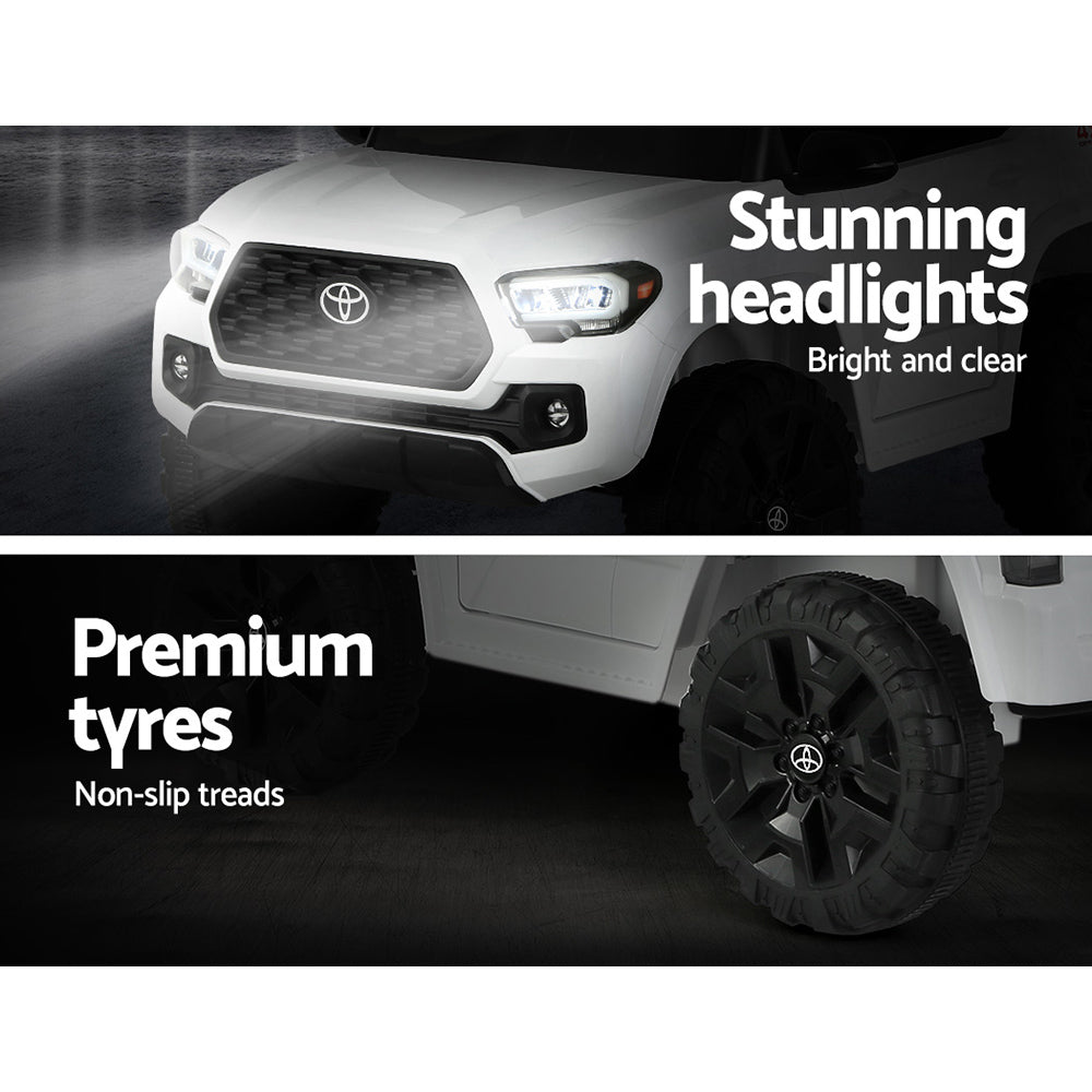 Let your little one experience the excitement of driving a Toyota Tacoma. The steering wheel and acceleration pedals to control the forward and reverse movement give your child control and a realistic driving experience. It comes with some cool entertaining features that will allow your child to have hours of fun. It includes a safety seat belt and a remote control for parent supervision, making it the ideal choice for parents who want a safe and fun way for their children to explore their environment. The licensed Toyota ride on Tacoma is the perfect gift for any young car enthusiast.