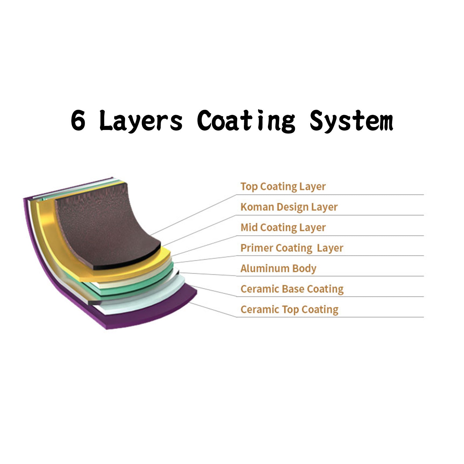 Internal and external 6 layers coating - Reinforced with a strong and robust titanium coating for heavy non-stick black coating, reducing the frictional force of the coating surface for excellent coating and cleaning power. The release of the raw infrared radiation gives the deep flavor of the dish.