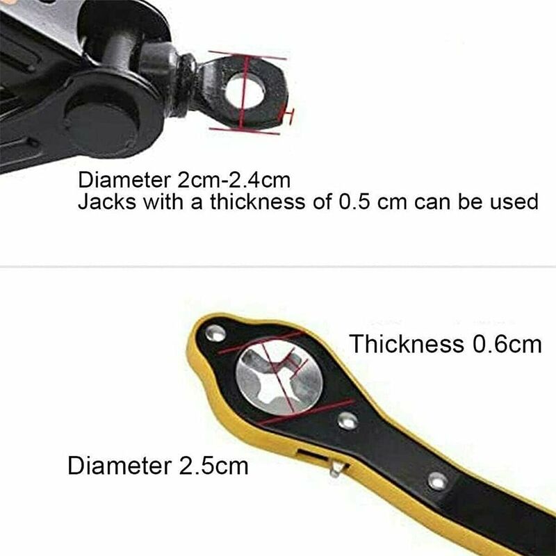 - 2.5cm/0.98inch Suitable for: Scissor jack with a diameter of 0.5cm/0.19inch Size: (Approx.) (LxWxH) 27x5x5cm/10.6x1.96x1.96inch Package Included: 1pc x Labor-Saving Wrench