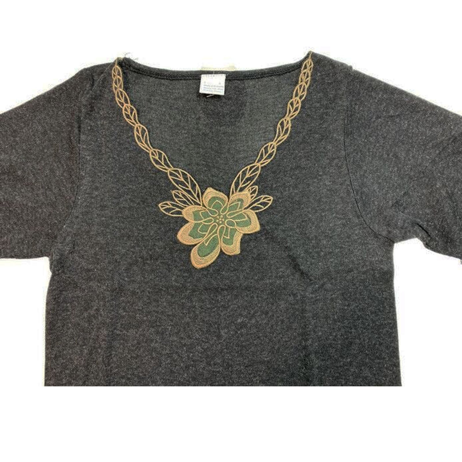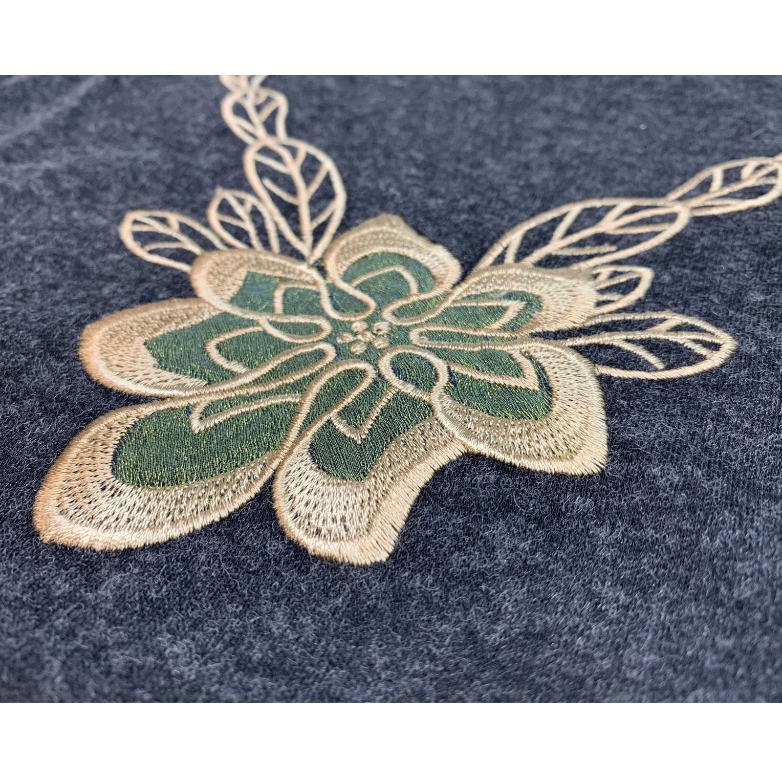 Beautiful, classic v-neck thermal long sleeve spencer thermal top with floral embroidered detail to keep you warm during the colder months.