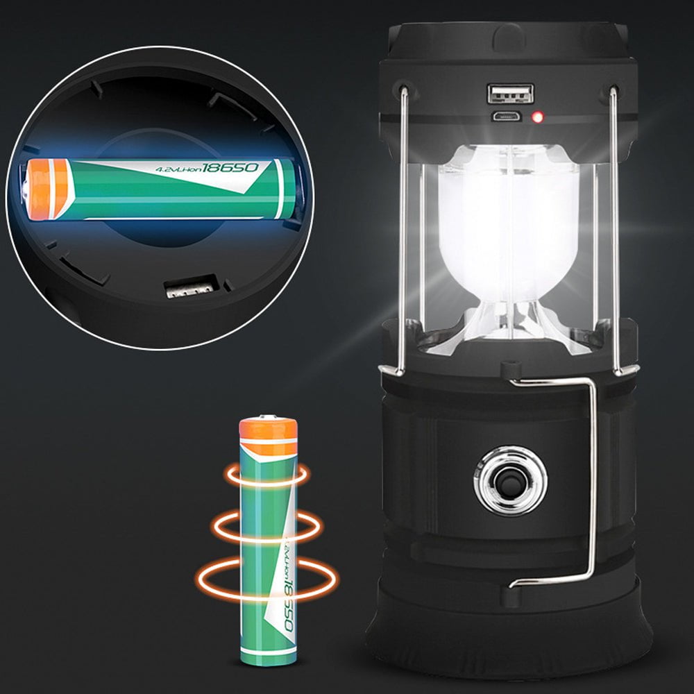 Solar and USB rechargeable: built-in 1200 mAh lithium battery allows you to charge the lantern via solar power, battery or USB. Battery operated, no need for a few hours charging time. In an emergency, you can also use the battery as a power source to illuminate the camping lights. Camping lantern can also be charged as a power bank via the USB port of your mobile phone or other devices