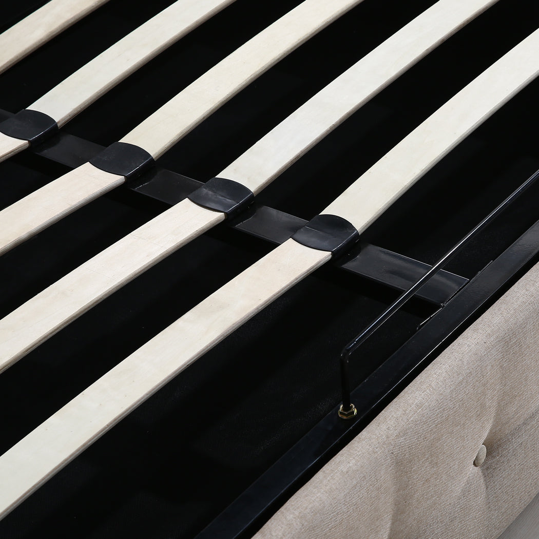 A perfect addition to your bedroom. A design you will cherish and fall in love with. For great support, we have made the entire frame from enhanced aspen wood. Featuring strong metal joints to provide exceptional support and durability. Supports the entire mattress effectively prevents sagging. Store all your bedroom essentials such as bed sheets, clothing, and many more underneath the bedframe with its ergonomic gas lift storage. Very easy to assemble with simple instruction.