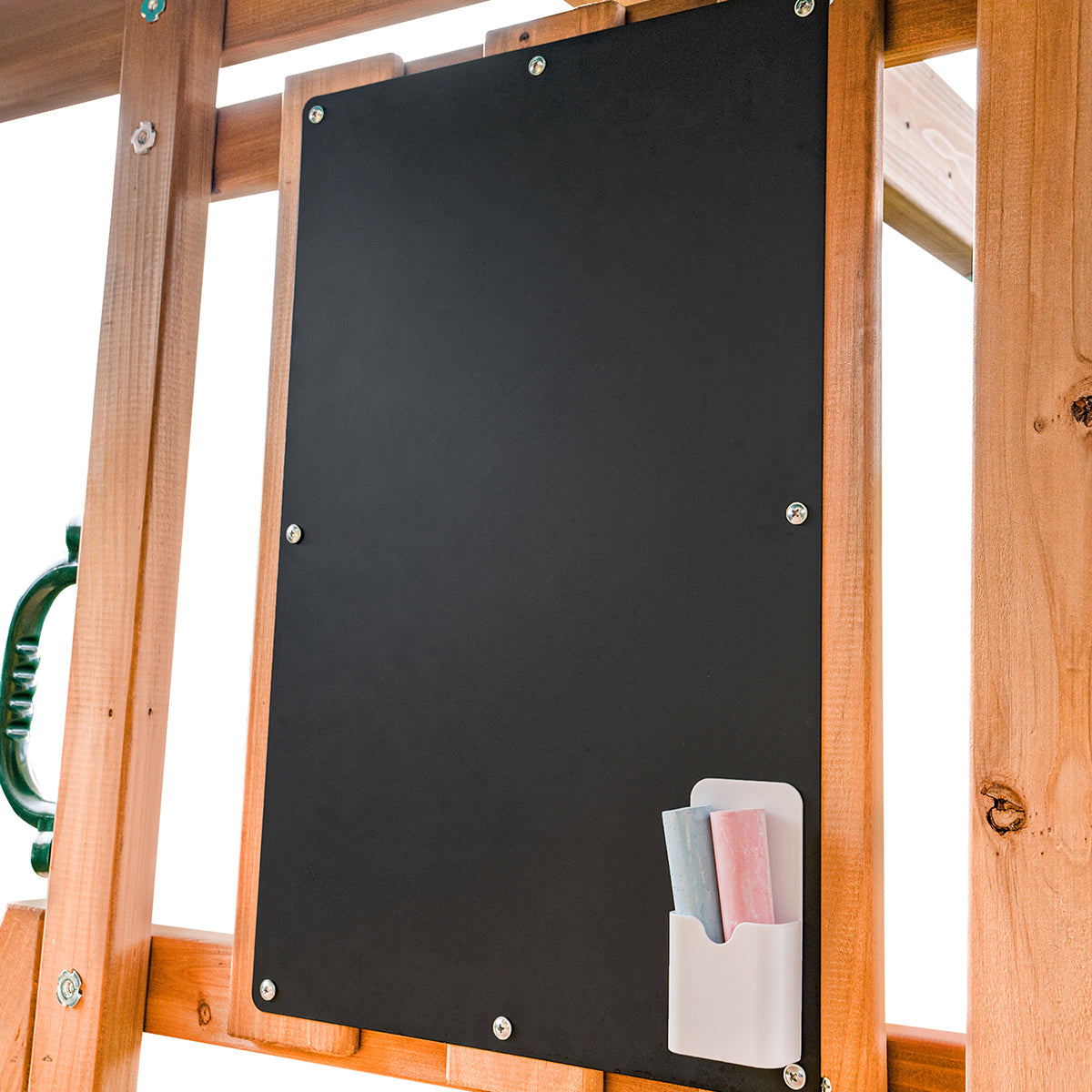 The Birmingham Play Centre Set is the ultimate backyard adventure for kids, offering more space and excitement than ever before. Kids can challenge themselves on the rock-climbing wall or easily access the play area via the sturdy ladder. The 3 Position Swing Beam comes equipped with two swings and a trapeze, giving your little ones endless options for a thrilling playtime. All Lifespan Kids products are built to last, with high-strength steel brackets featuring powder coating for maximum weather protection. The timber undergoes a high-temperature treatment, making it durable, resistant to rot and decay, and sustainably sourced to ensure a brighter future for your children.
