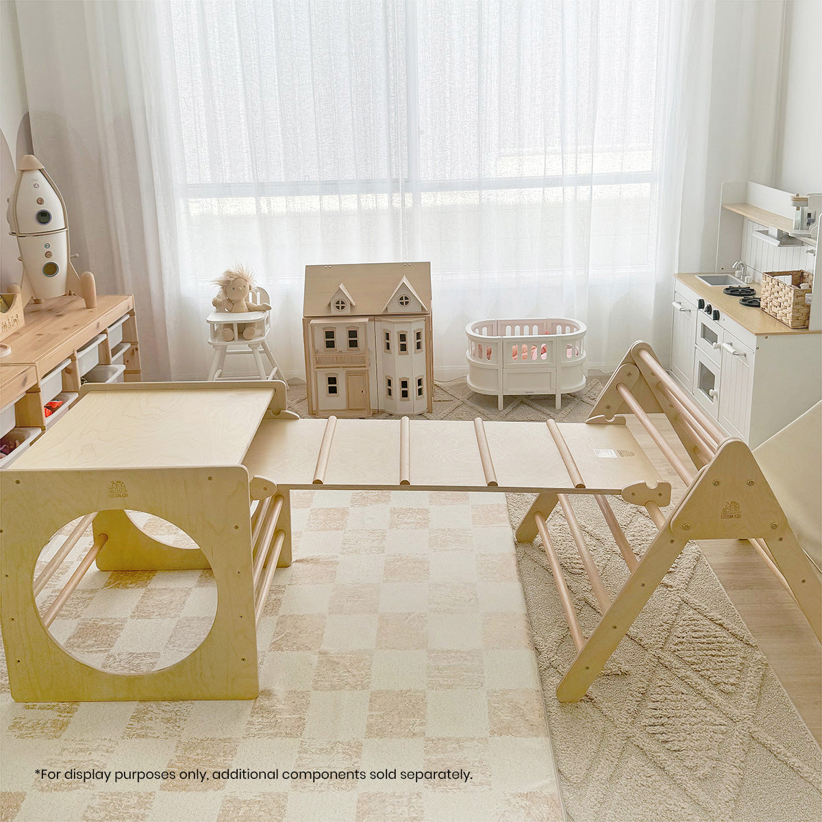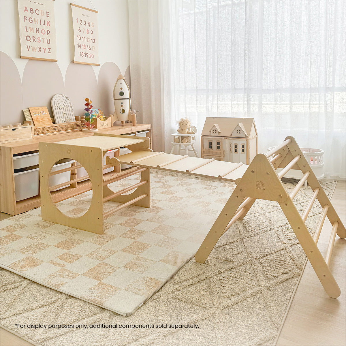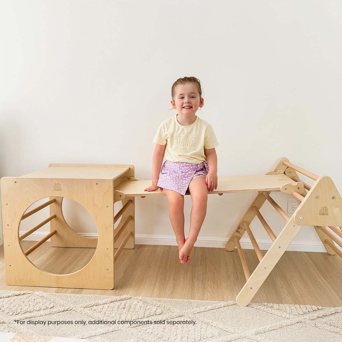 Elevate your child's playtime with the Pikler Climbing Frame. With premium quality construction, this sturdy triangular climbing frame is a fantastic addition to any indoor or outdoor play space. Using a combination of birch plywood and beechwood, you can have peace of mind that the materials are non-toxic, durable and easy to assemble. Its high-quality construction means there is less chance of splintering, keeping your child safe while they build forts, slide and engage in imaginative play. Encourage your child's growth and development while fostering creativity and adventure with the Pikler Climbing Frame.