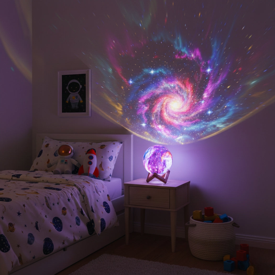 Lil’ Dreamers creates charming, child-friendly décor designed to spark imagination and comfort, and the Lil’ Dreamers Touch Lamp Galaxy Moon brings that magical feeling to life with a realistic galaxy-printed moon, soft ambient glow, touch-sensitive colour control, and a stylish wooden stand that fits beautifully in any bedroom or nursery; this enchanting night lamp offers .