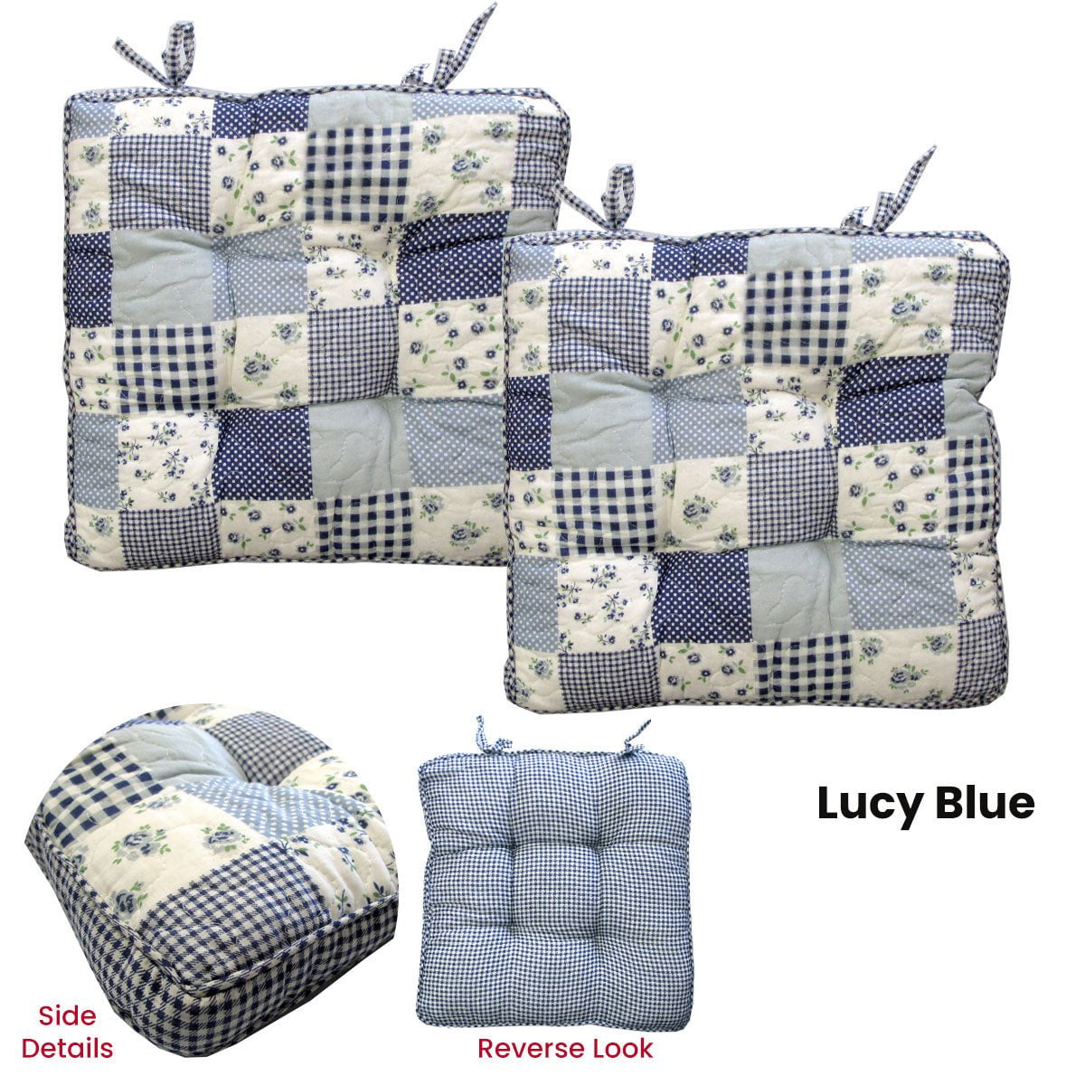 Lylac Homewares Petal Delights Set of 2 Cotton Chair Pads Lucy Blue