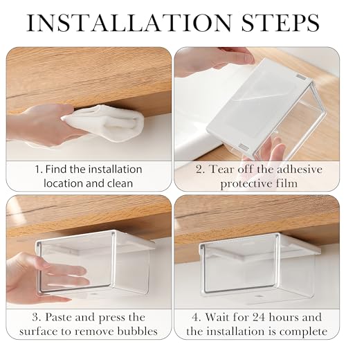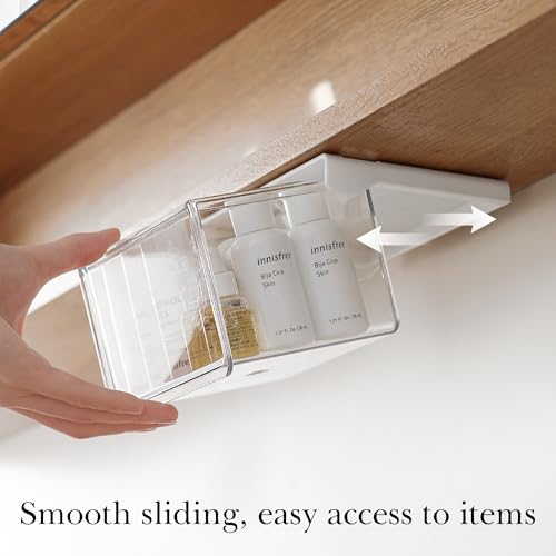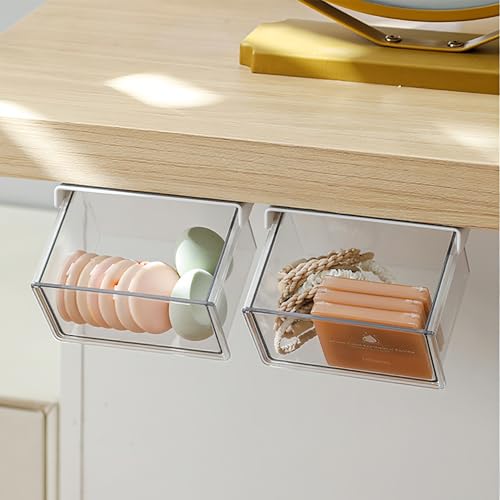 The under desk drawers are made of transparent plastic, allowing you to clearly see stored items and easily find cotton swabs, toothpicks, hairpins, rubber bands and other small items.