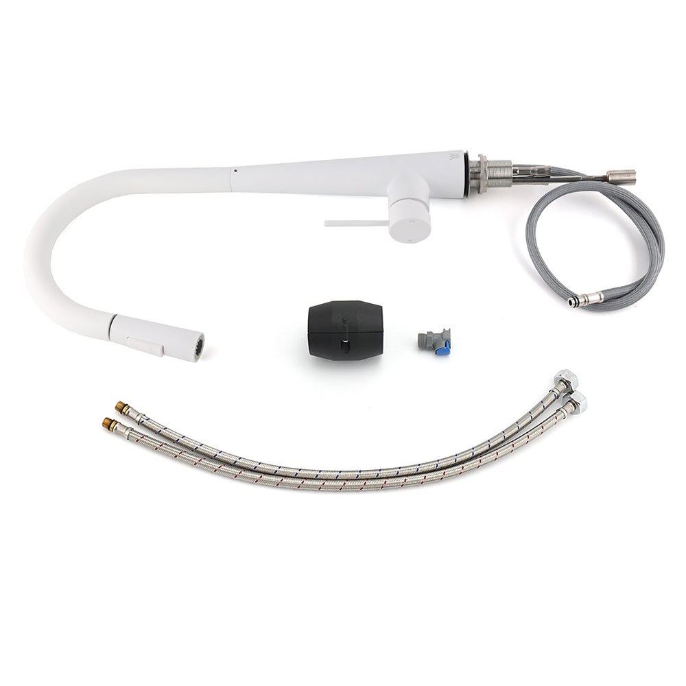 - Long pull out hose for a flexible washing, with a gravity ball for self-retraction function