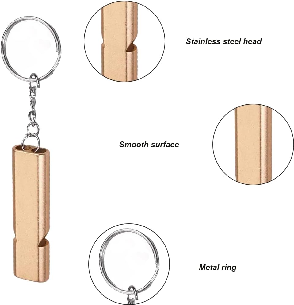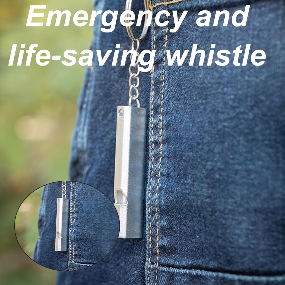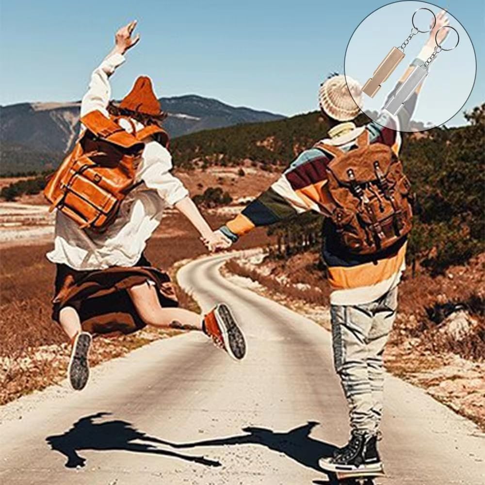 Scene Recognition Always Audible, Wherever Your Adventure Takes. Imagine yourself hiking in dense forests, camping in the mountains, or needing a signal on a crowded sports field. For situations where your voice isnt enough, this Metal Emergency Whistle provides the answer. Whether its guiding a training session or attracting attention in an unexpected situation, this compact instrument ensures youll always be heard. With this stylish Silver and Gold set, you combine functionality with a luxurious look. Key Features This whistle is designed for maximum reliability and strength HighQuality Material Made of durable and corrosionresistant metal, ensuring a longer lifespan than plastic alternatives. Loud Signal The whistle produces a piercing sound that effortlessly cuts through surrounding noise, ideal for Sports, Outdoors Safety. Convenient Keychain Thanks to the integrated keychain, you can easily attach the whistle to your keys, backpack or clothing. Double Set You will receive a set of 2, so you always have a spare or can give one to a family member. Your Benefits Maximum Portability Thanks to the lightweight design and the keychain, you always have a metal emergency whistle within reach without any extra weight. Weatherproof Unlike electronic alarms, this whistle always works, regardless of weather conditions or battery status. Versatile Use An indispensable tool for referees, walkers, and for personal safety while running in the dark. Eyecatching Design The combination of silver and gold makes the whistles not only functional but also easy to find in your bag. How to Use This metal emergency whistle is very effective Attach the whistle to your keys or bag via the keychain for quick access. Place the whistle to your lips and blow briefly and forcefully. Use different signals for example, three short blasts to call for help or attract attention in an outdoor environment. Thanks to the robust metal, a light cleaning with water is sufficient to keep the whistle hygienic. Product Specifications Product Metal Emergency Whistle Quantity Set of 2 Pieces Colors Silver and Gold Accessories Includes sturdy keychain Application Suitable for Sports, Outdoor Safety camping, hiking, emergency signals