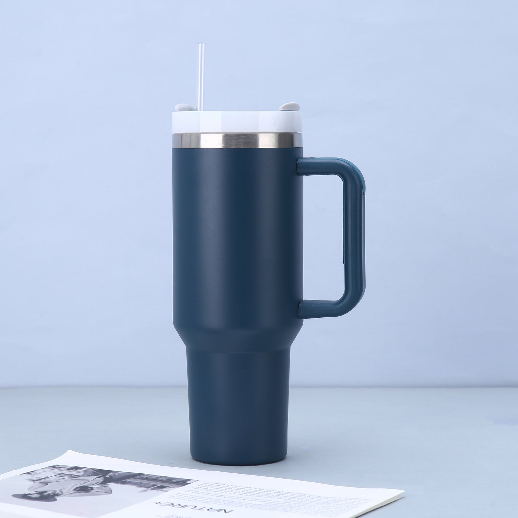 Navy Blue 40oz Stainless Steel Tumbler with Handle & Straw - Large Capacity Insulated Travel Mug