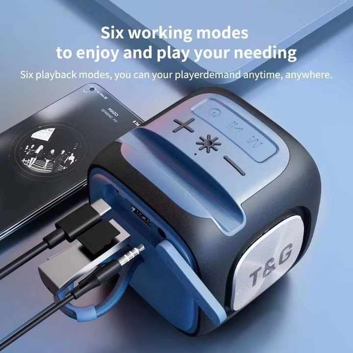 Take your music on the go with this versatile and compact T&G Mini Bluetooth Speaker. Featuring a unique cube design with dynamic RGB lighting, it delivers impressive sound and multiple playback options, making it the perfect audio companion for home, outdoors, or travel.