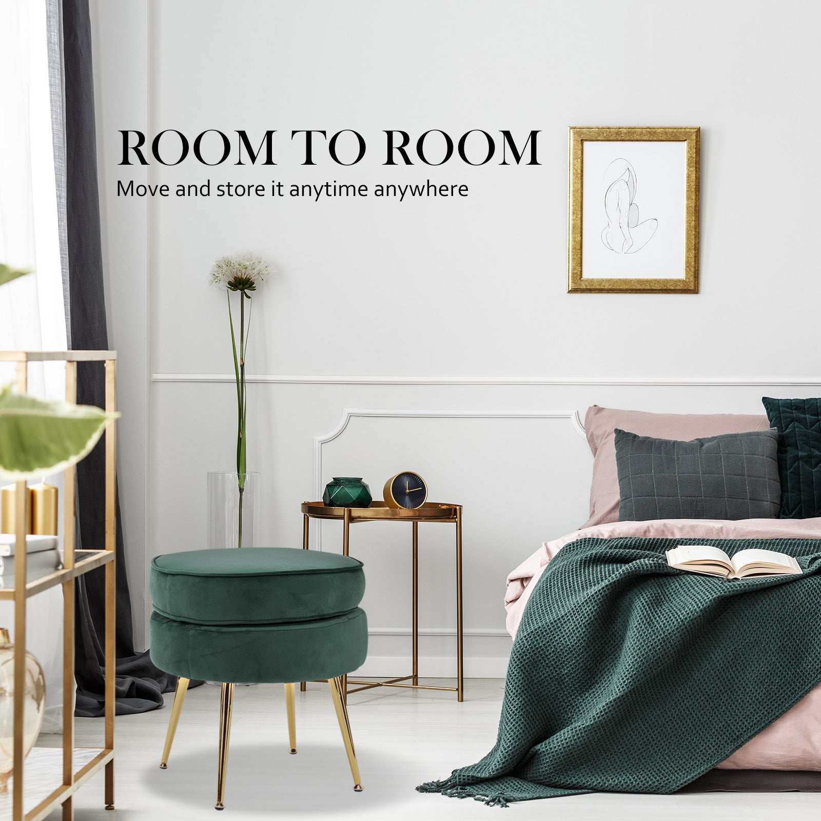 La Bella Ottoman Foot Stool Velvet Fabric Metal Leg Round - Green