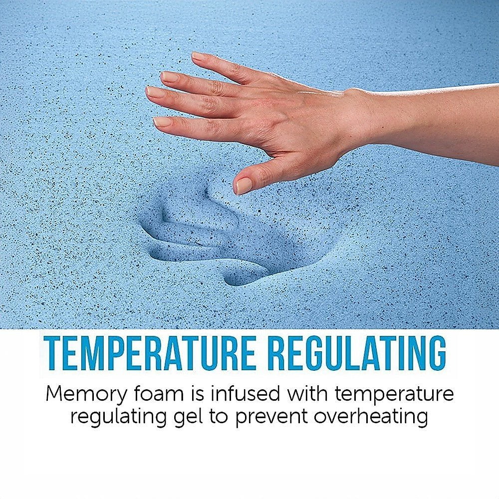 - Gel infused memory foam regulates temperature while conforming to the body to ease pressure points