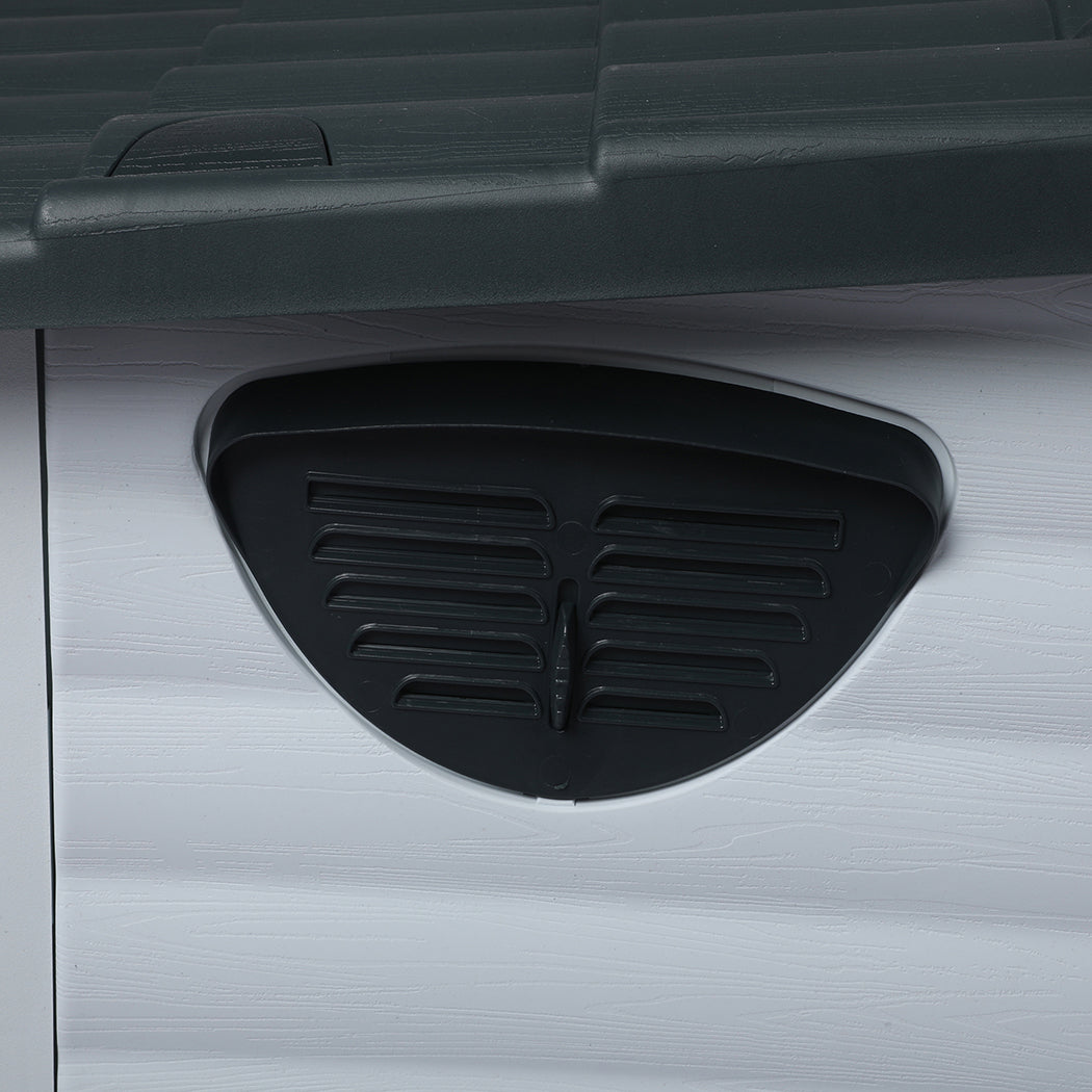 It cares for them; this doghouse comes with special vents to enable easy flow of air in and out. The floor is raised to prevent dampness and cold from breaching in.