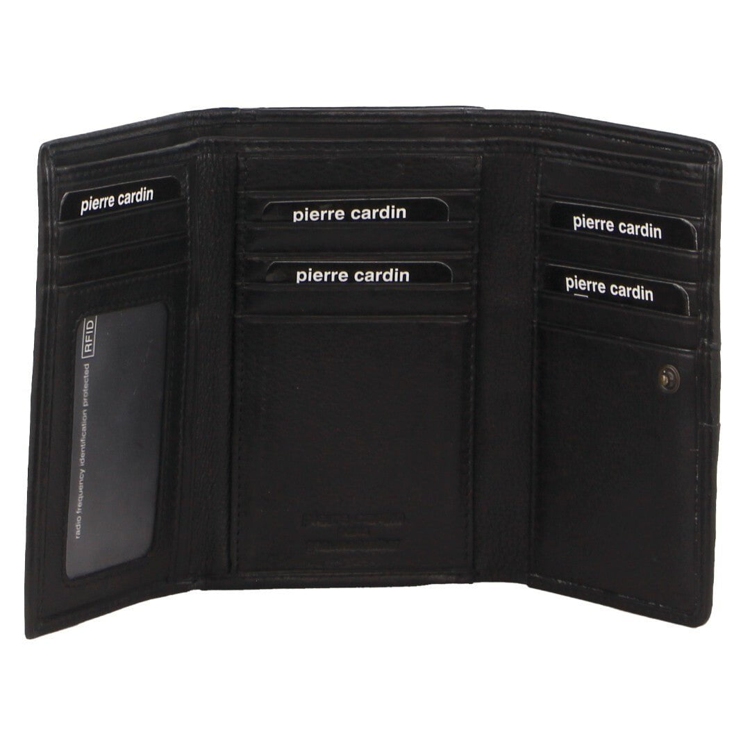 Discover the epitome of elegance and functionality with our Pierre Cardin Leather Ladies Woven Design Tri-fold Wallet in classic black. This exquisite accessory, designed for the fashion-forward woman, combines luxurious Italian leather with intricate craftsmanship to create a piece that's not just a wallet but a statement of style.