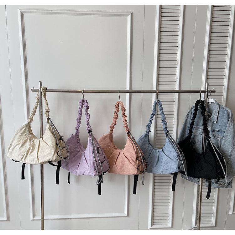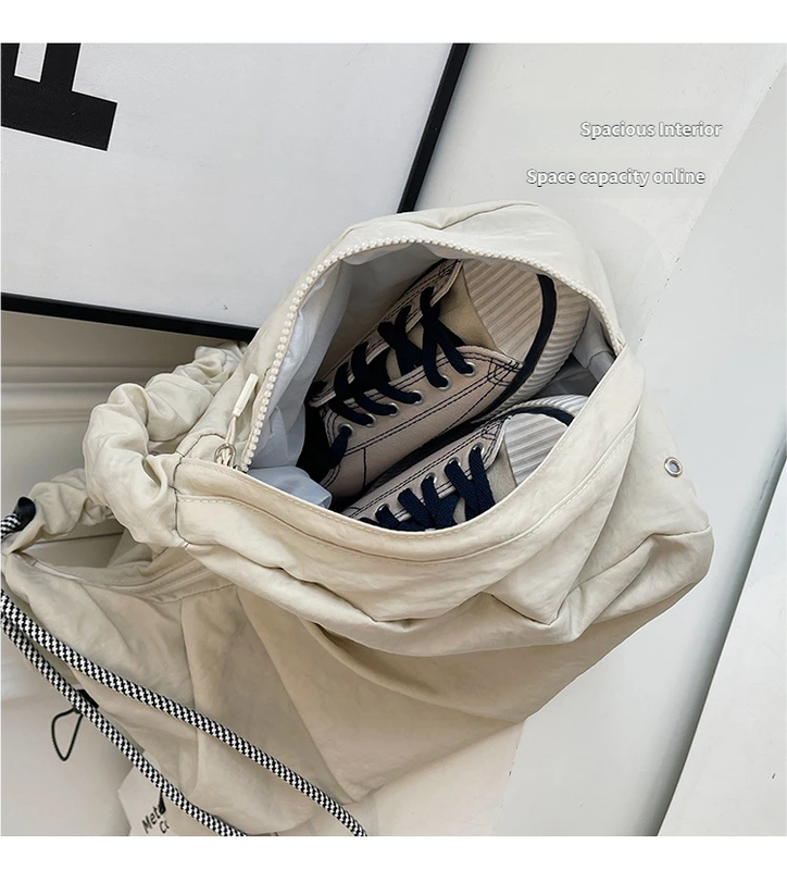 • Fashionable Ruched Handle Design: Features a trendy pleated handle and drawstring details that add a touch of sophistication to your athletic or casual outfit.