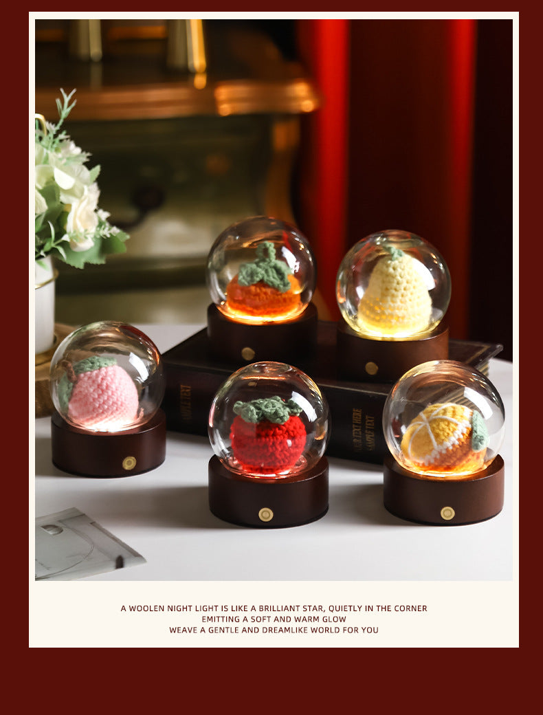 • 1 x Crochet Flower LED Night Light with Glass Dome & Wood Base