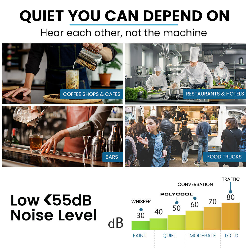 - Operates quietly at less than 55dB, suitable for front-of-house use
