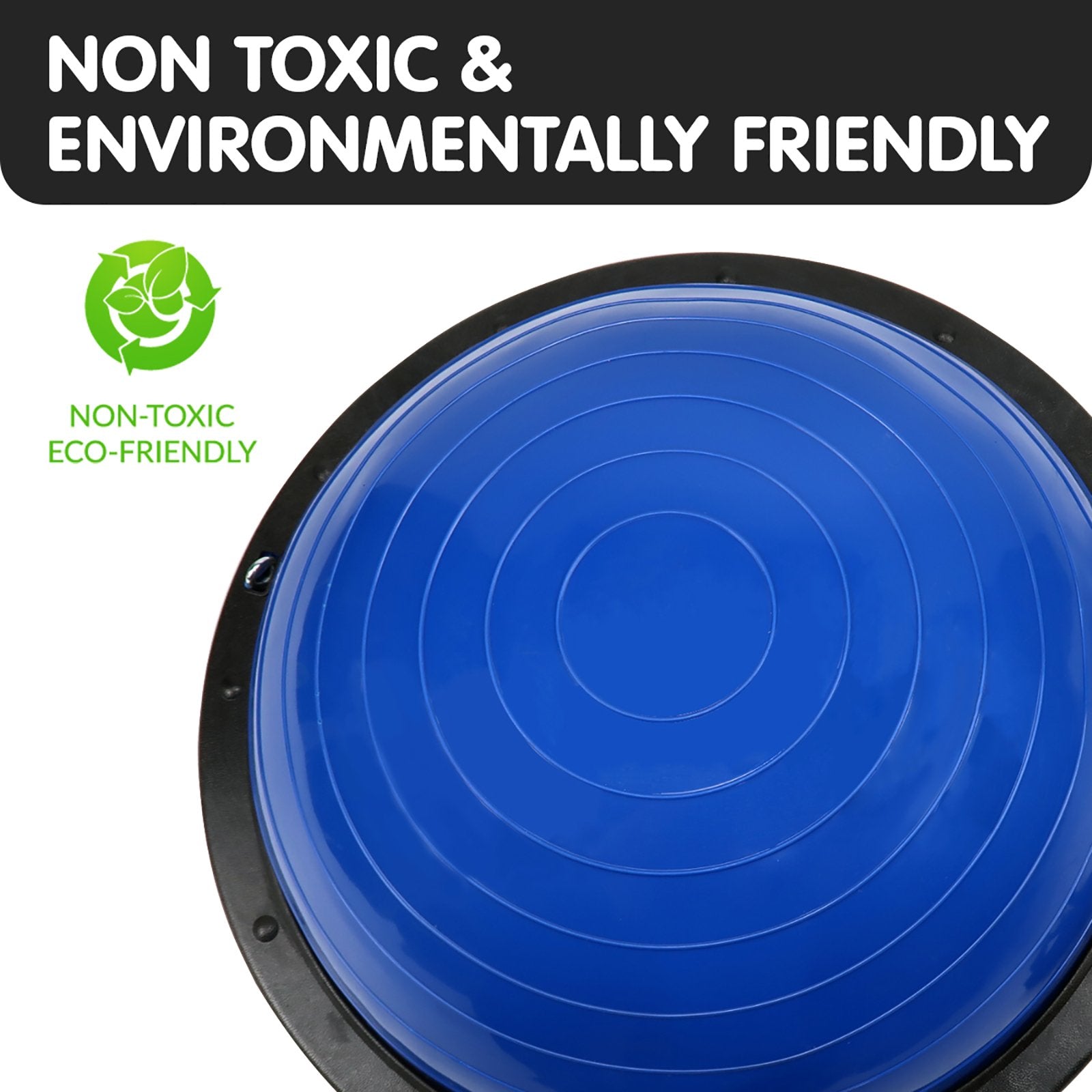 This unique balance ball features a flat side to provide a stable base, as well as a dome for balance challenges to tone the upper and lower body. With 8 rubberized anti-slip floor pads, there's no need to worry about sliding around during an intense workout.