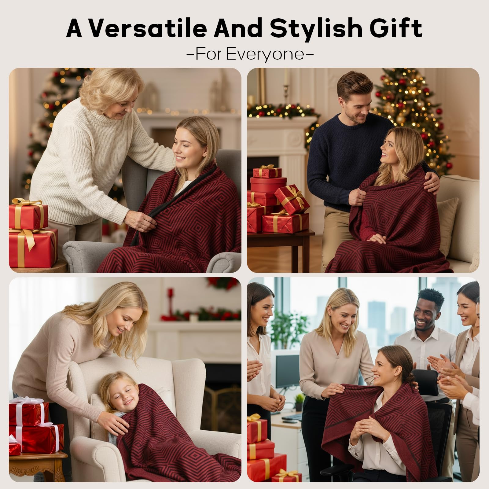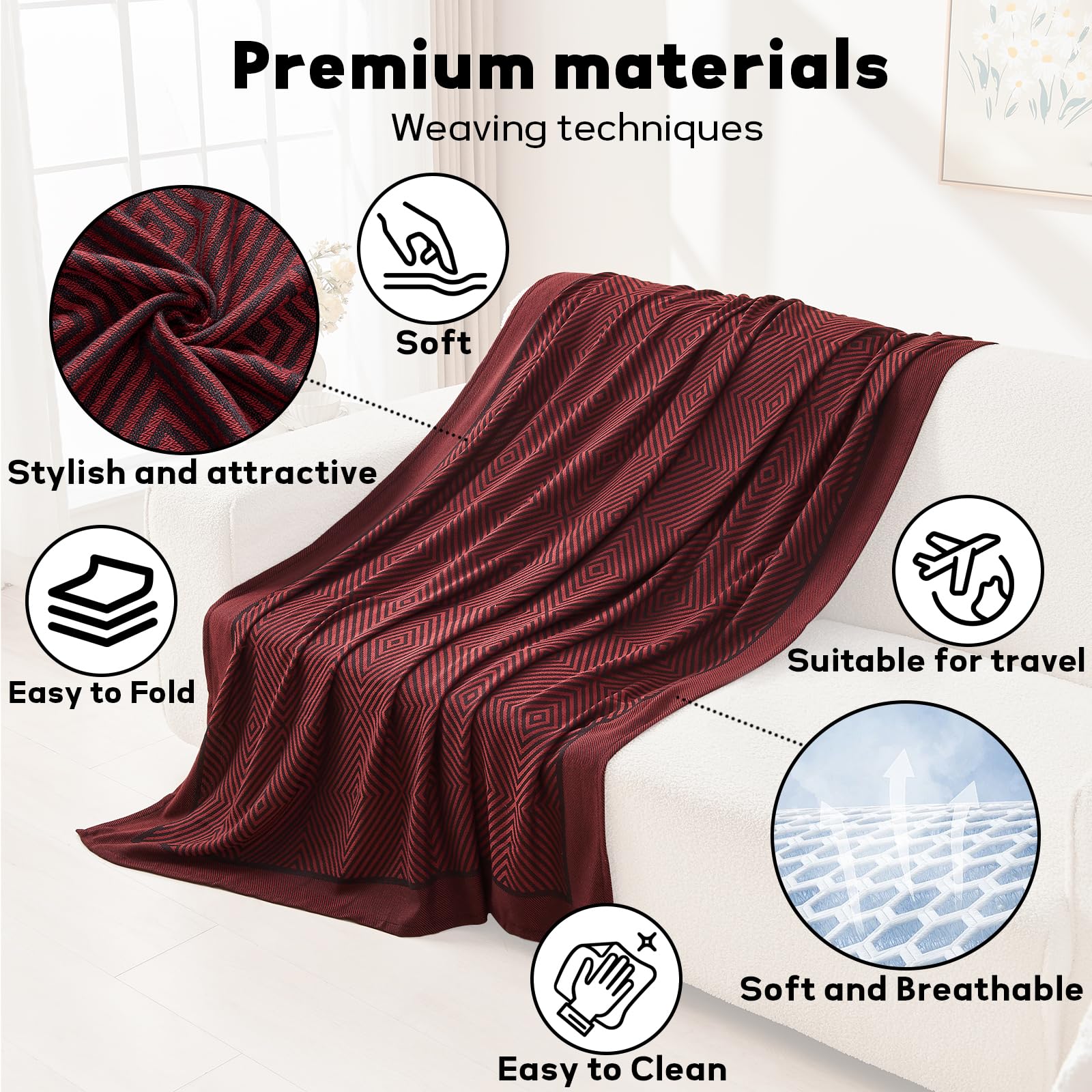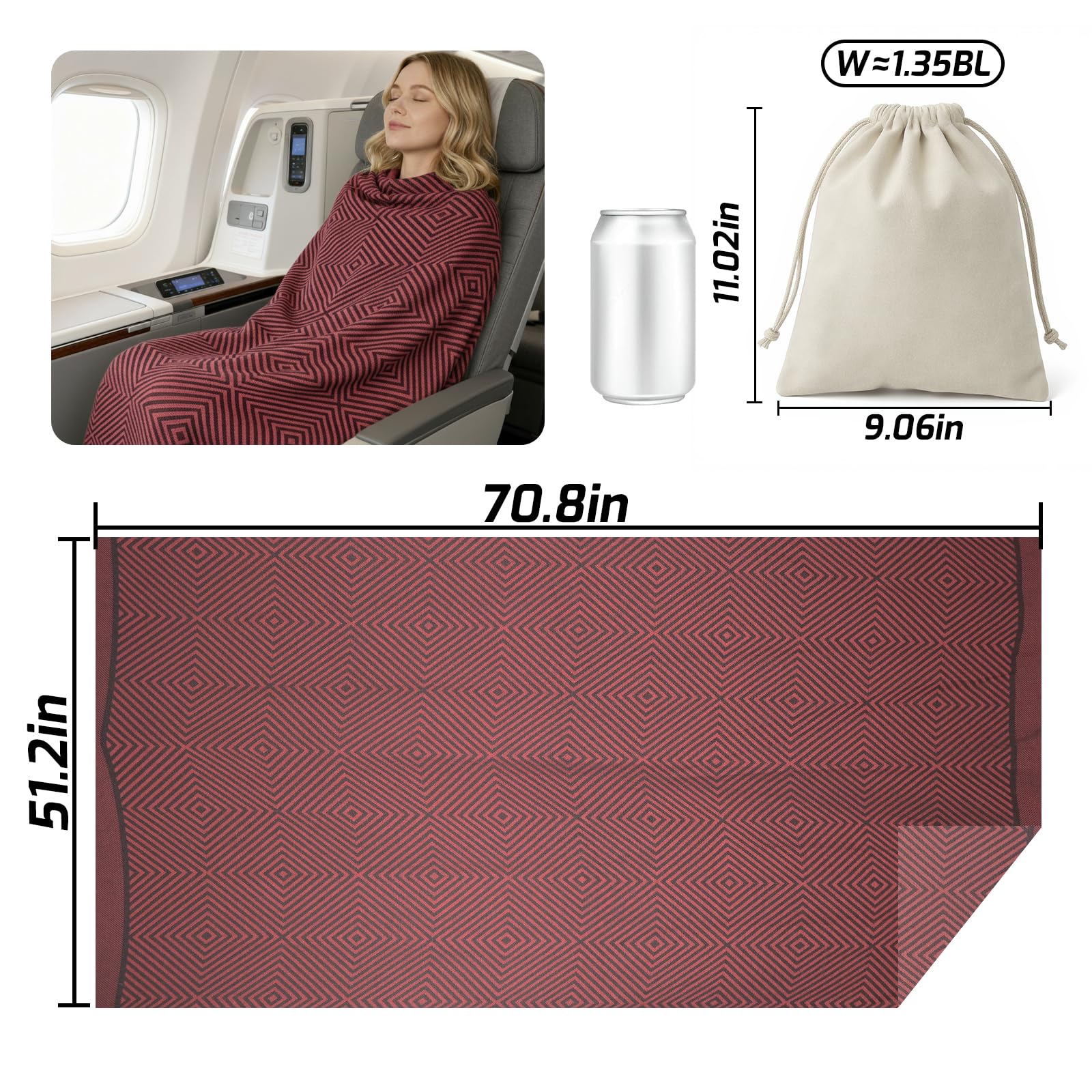 Premium Travel Blanket – Ultra-Soft Knit Wrap for Airplane, Car, Office Naps, and Gifts – Lightweight, Breathable, and Stylish with Storage Bag (Red)