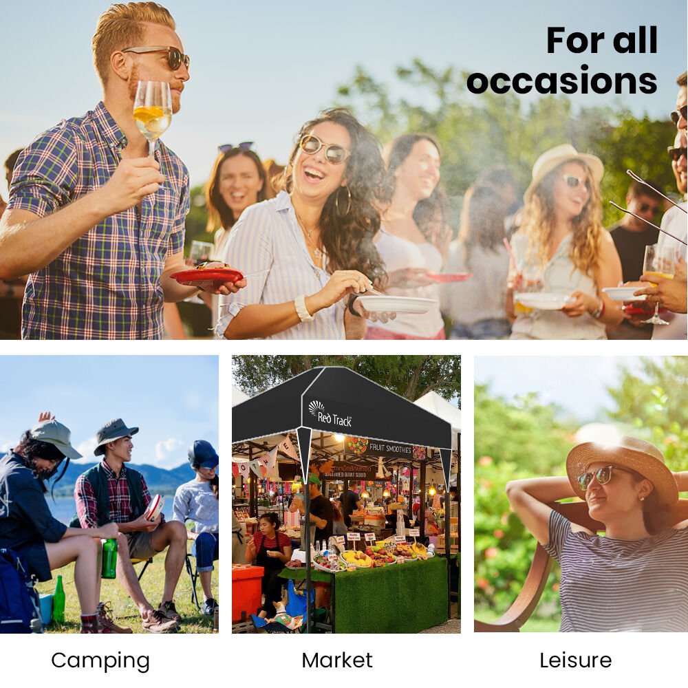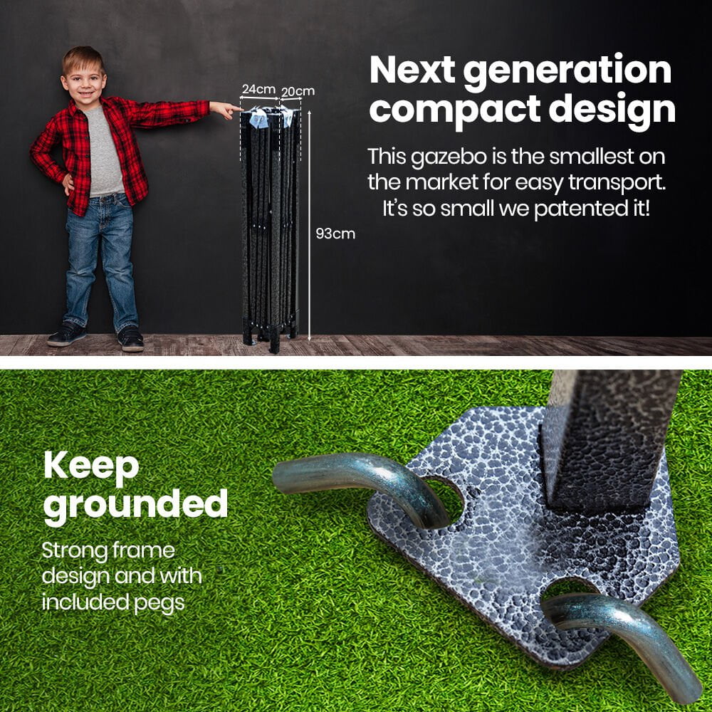 The Red Track 2.2x3.6m Gazebo (with 3 walls included) stands out with the smallest folded size on the market—just 93cm long! This ultra-compact 13kg design makes it incredibly easy for one person to carry, transport, and store, offering unmatched convenience compared to bulkier alternatives. Whether you're short on space or always on the move, this gazebo’s design ensures portability without compromise.